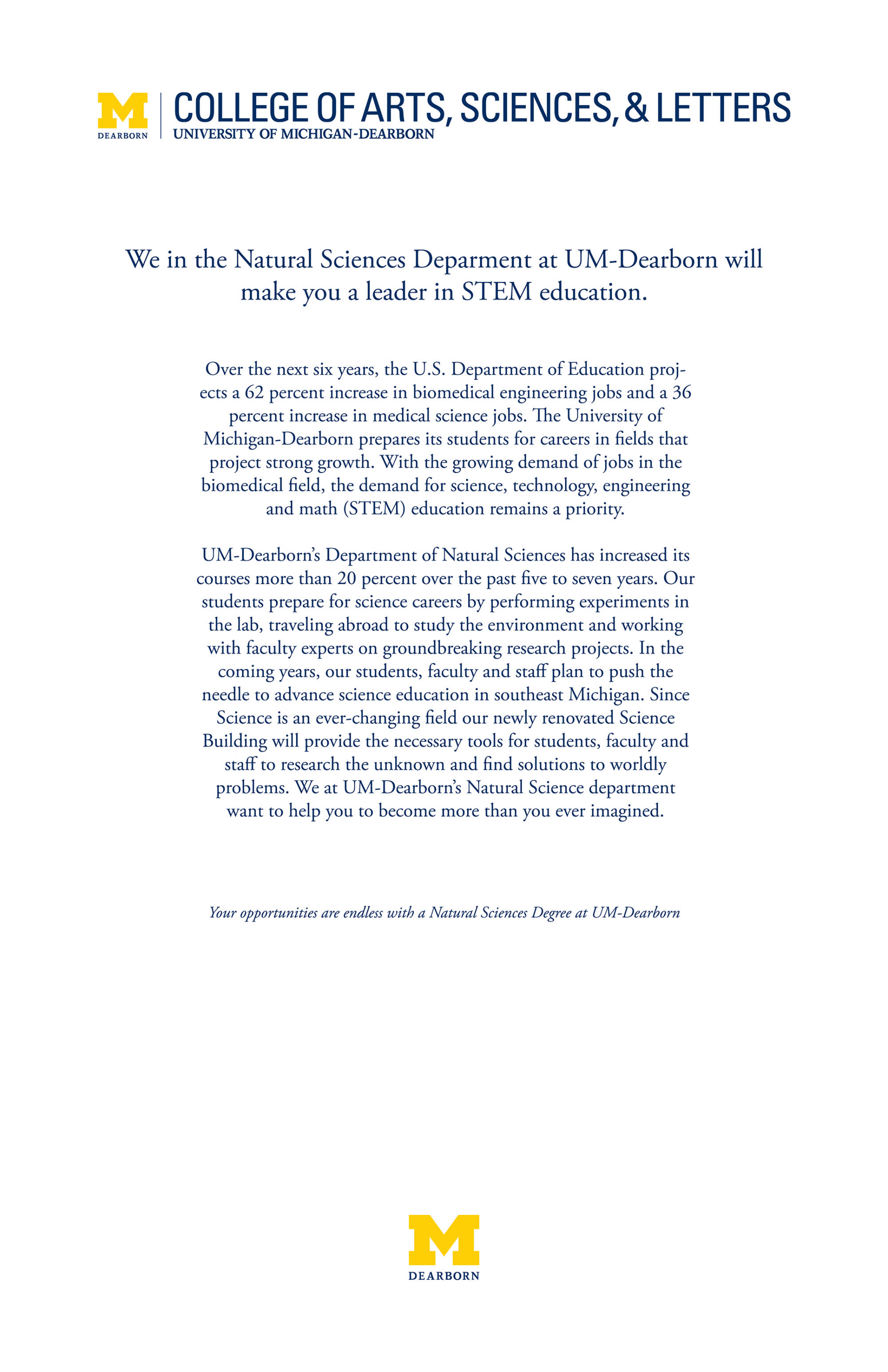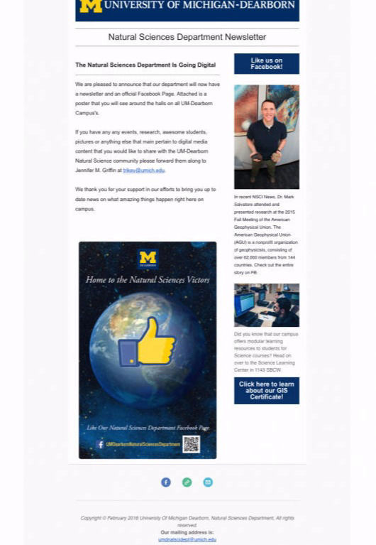 University of Michigan Natural Sciences Department - art direction, copywriting & journalism