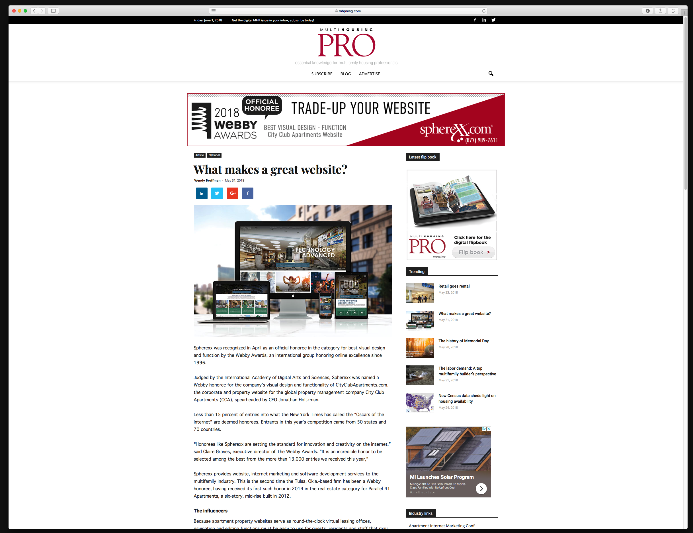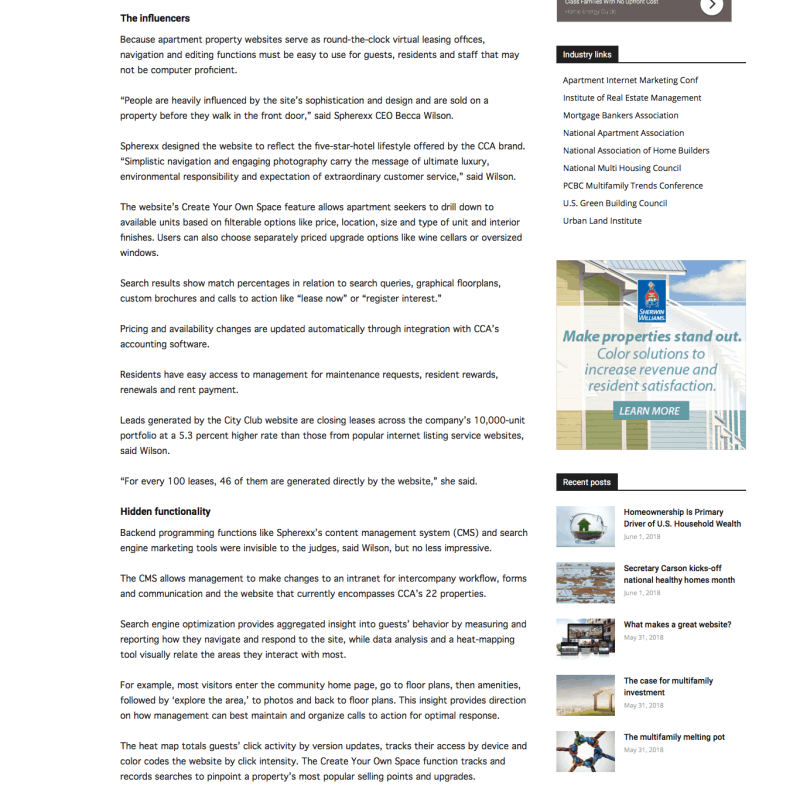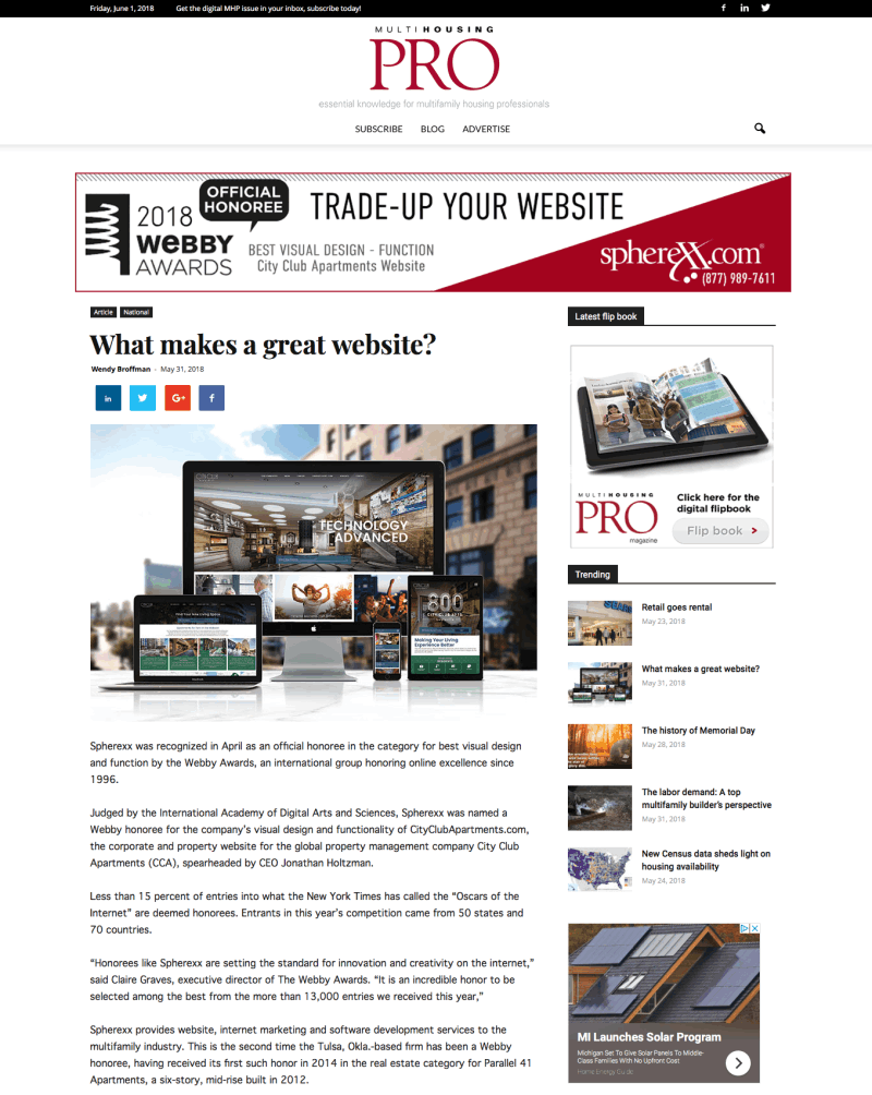 City Club Apartments - Webby Award
